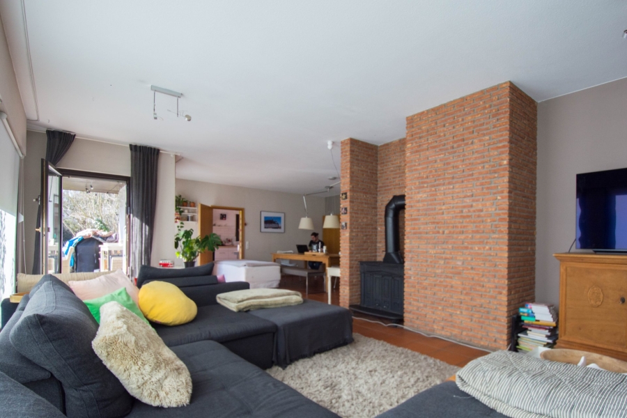 Beim Betreten des Hauses werden Sie von einer großen Diele empfangen, von der Sie zum einen in einen Flur, zwei Zimmer sowie ein Bad, und zum anderen direkt in das Herzstück dieses Hauses gelangen, sein knapp 54 m² große Wohn- und Esszimmer, welches dank einer nach Süden ausgerichteten, kompletten Fensterfront in Sonnenlicht erstrahlt. Der Terrakottaboden verleiht diesem Bereich einen südländischen Touch. Von hier aus